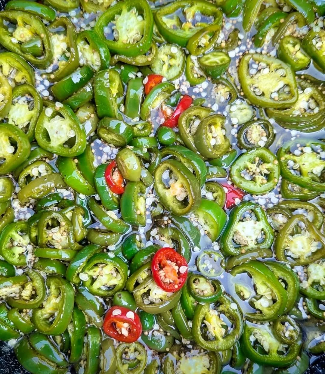 Ingredients: Jalapeños, Sugar, Apple Cider Vinegar, Garlic Powder, Mustard Seed, Celery Seeds